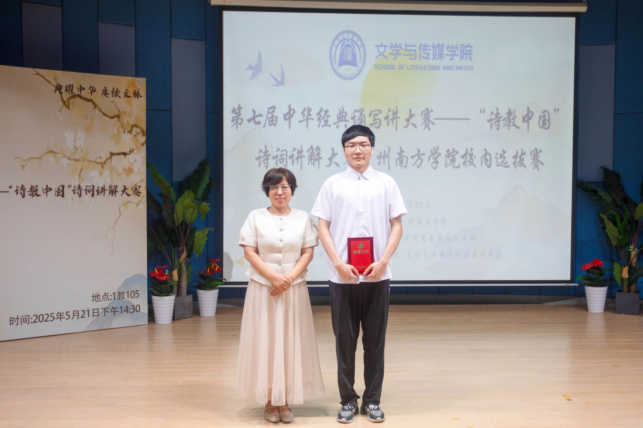 经过评委老师们的综合评审,第七届 “诗教中国” 诗词讲解大赛广州南方学院校内选拔赛的获奖名单如下: