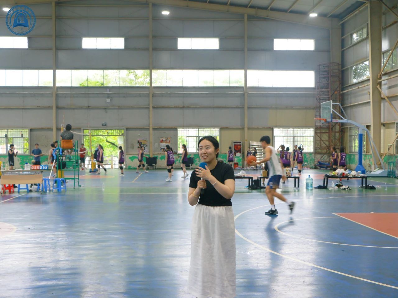 在篮球赛闭幕式上,杨乃杰老师发表了讲话,她表示,赛事顺利举办离不开多方努力:教师团队的表演为活动增色,团学工作人员的周密策划保障了赛事进行,而参赛同学克服降雨、闷热等困难坚持完赛,全体运动员平安完赛正是本届赛事最圆满的成果,更充分体现了大家对篮球运动的热爱。她向全体参与者致谢,并期待未来继续携手为校园体育文化注入活力。