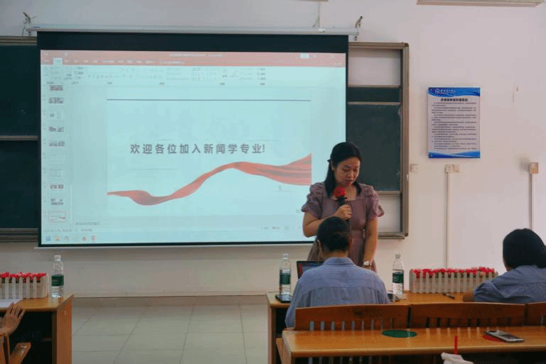 为了帮助新闻学专业新生更全面、清晰地了解本专业的育人理念、课程设置, 9月28号中午12:30,新生辅导员徐硕老师于1教202主持召开了新闻学专业新生见面会暨专业宣讲会。本次宣讲由新闻与传播系主任陈珂副教授主讲,杨萍副教授、张晓丹副教授、温灵副教授,吴迎春、张嘉伟、梁爽等多位青年骨干教师共同参与。专业教师们围绕新闻学专业的专业建设历程、课程体系、师资力量、实践实训模式等多个方面进行了全面而深入的介绍。介绍会内容详实、环节紧凑,旨在帮助新生点亮专业学习的“第一盏灯”。