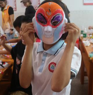 7月6日上午,京剧脸谱的课程在“幸福港湾”活动中心拉开了序幕。刘诗妤同学和马洁娜同学通过生动的讲解和图片展示,由浅入深地介绍京剧脸谱的历史渊源、四大行当以及色彩与图案背后的文化内涵,随后,小朋友们在哥哥姐姐们的指导下,拿起画笔,为空白脸谱面具涂上鲜艳的颜色。在绘制过程中,孩子们将对传统文化的理解融入作品,激发他们对传统文化的浓厚兴趣。
