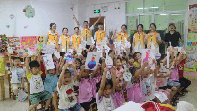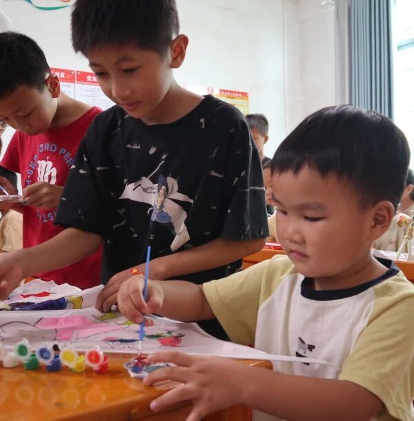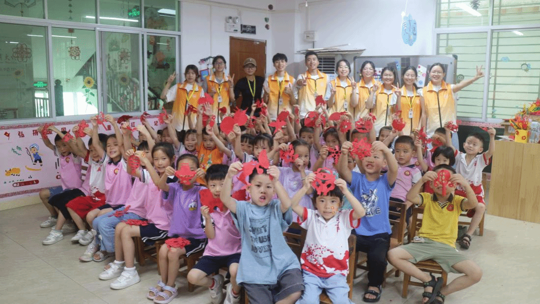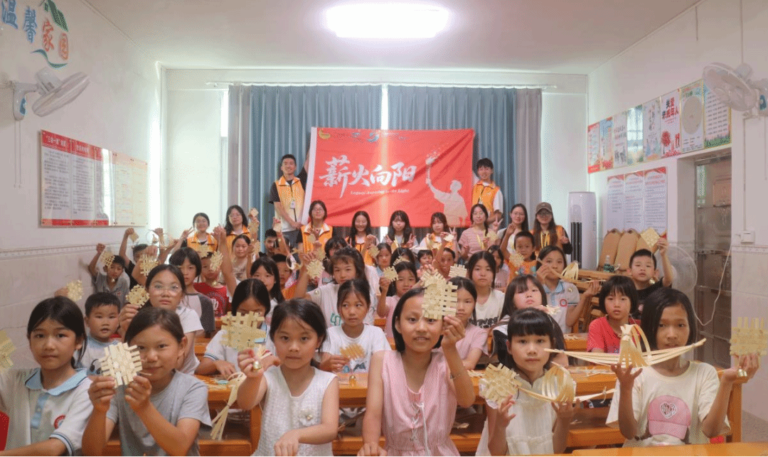 为深入学习贯彻习近平总书记关于青年工作的重要思想,积极响应广东省关于“百县千镇万村高质量发展工程”的战略部署,丰富乡村儿童暑期文化生活,隶属于广州南方学院文学与传媒学院汉语第二党支部的薪火向阳队深入基层进行社会实践,在广东省兴宁市罗岗镇开展系列义教活动。融合汉语第二党支部所打造的“党建+非遗文化传承”特色IP,同学们带来了精心设计的“童心向党·非遗生辉”主题课程,聚焦非物质文化遗产传承与文化浸润,带着乡间孩子一笔一划描绘非遗。