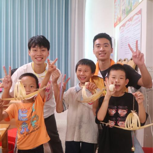 7月6日下午,薪火向阳队的义教活动以非遗竹编小课堂的形式继续进行。黄慧琪同学和吴湘怡同学带领孩子们进行了一个充满趣味的破冰游戏--"你猜我猜不猜!"现场气氛热烈,欢声笑语不断,激发了孩子们的热情以及对接下来活动的期待。在哥哥姐姐们的指导下,小朋友手中朴素的竹条逐渐变成了有形的竹编小船以及风铃。这一课程让有着悠久历史的竹编记忆在孩子们都手中焕发新的生机,为传统文化注入新的活力。