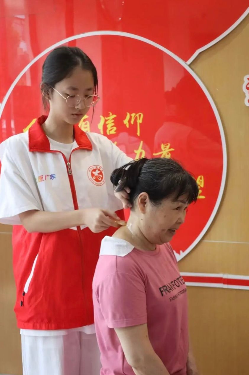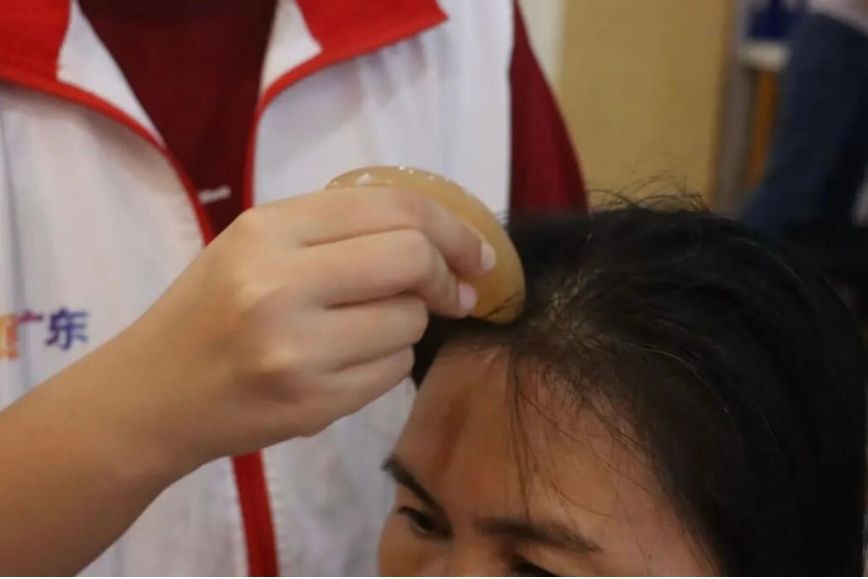 团队将罗浮山百草油配合刮痧疗效法为市民提供服务