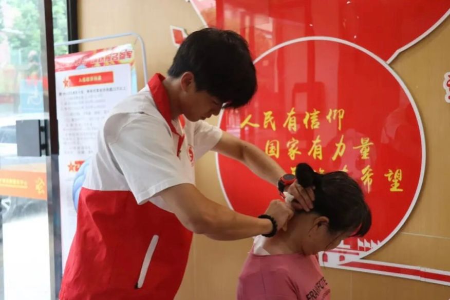 7月16日至17日,本团队联合长宁镇新时代文明实践所、长宁镇新时代文明实践志愿者协会、镇团委在长宁镇党群服务中心一楼共同举办“古法刮痧传养生,百草凝萃惠社区”活动。