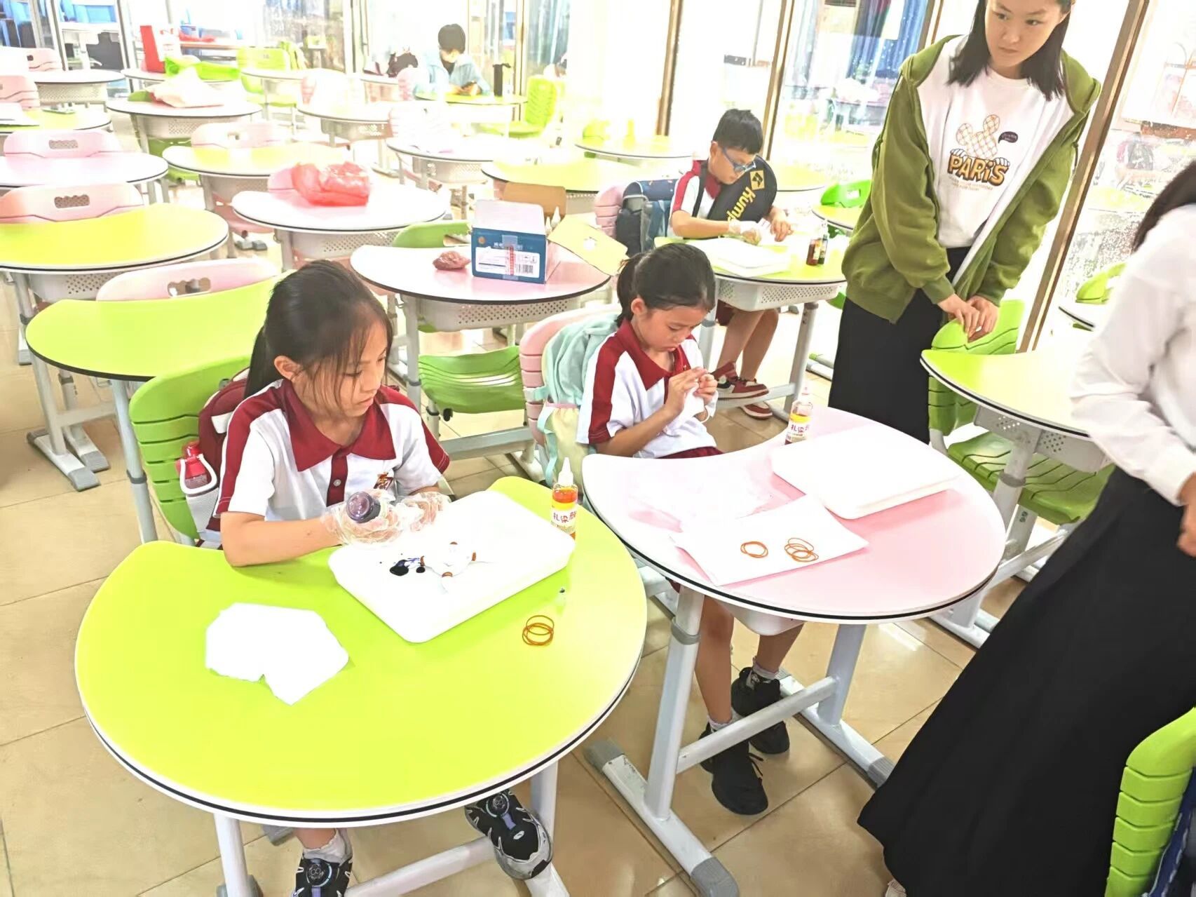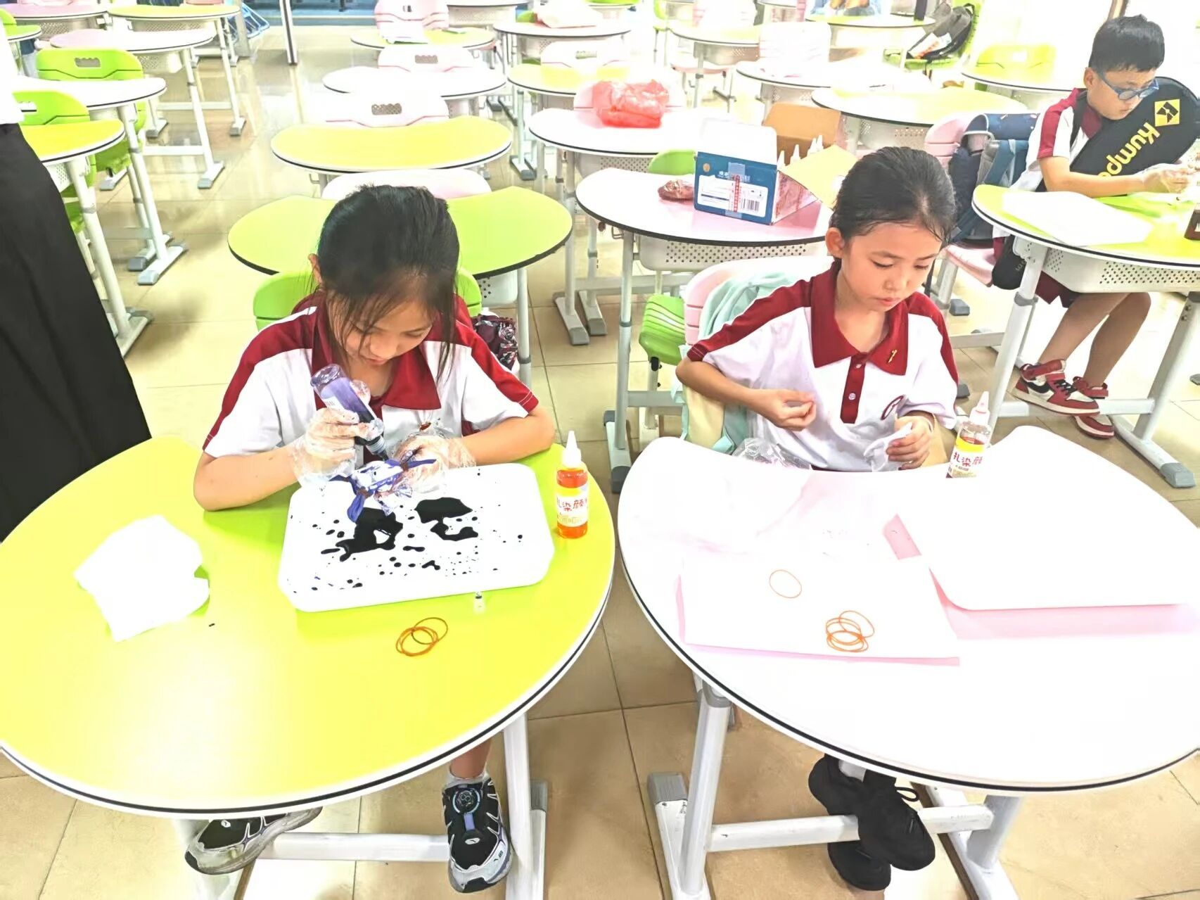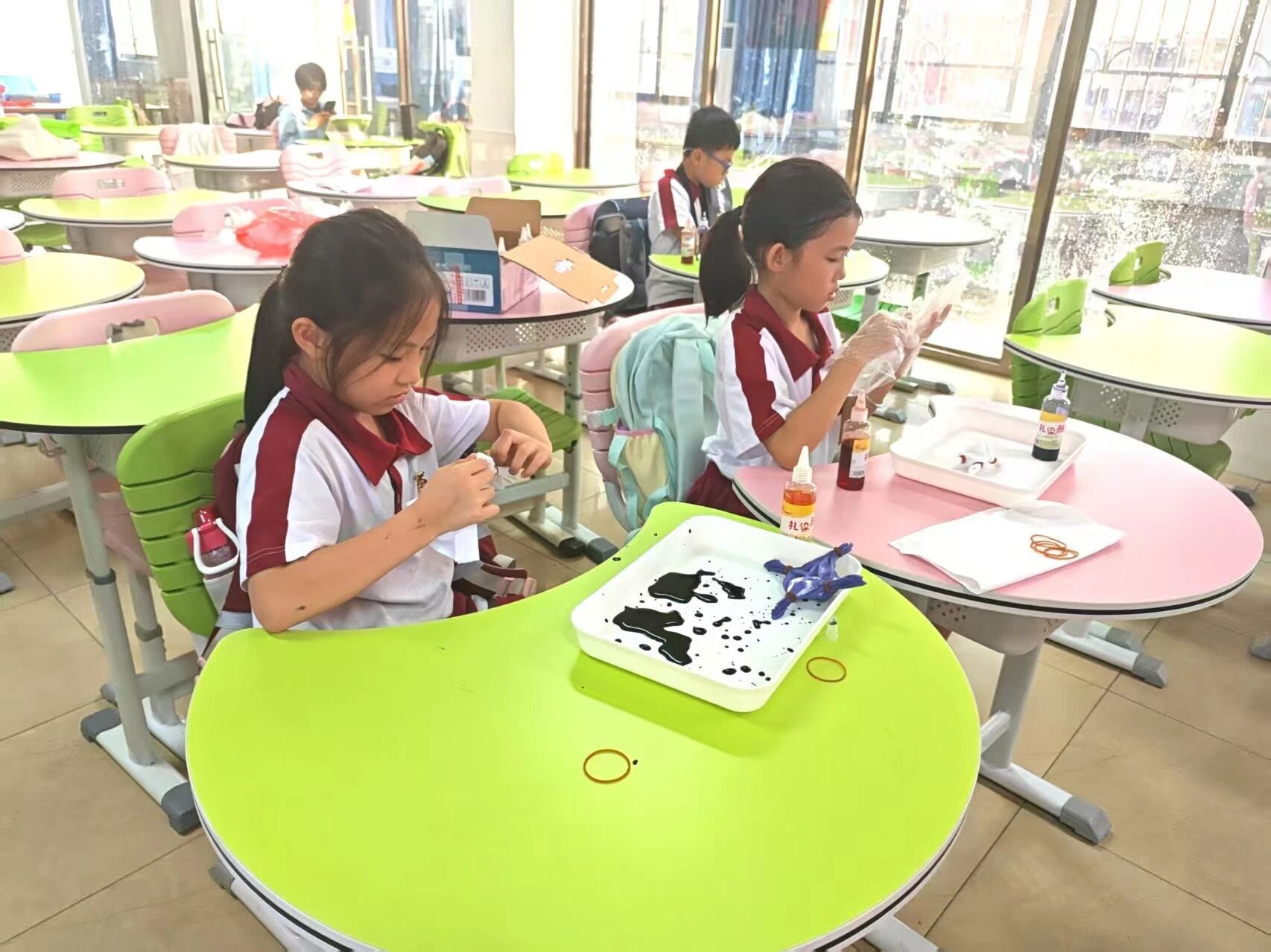 同学们动手进行扎染