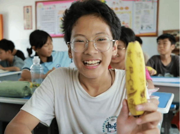 教员宋明洋正为学生讲授以香蕉雕刻甲骨文的相关理论知识