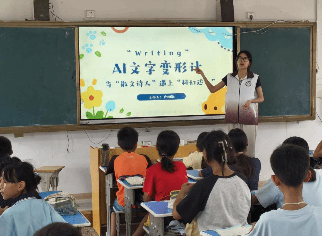 2025年7月6日至22日,广州南方学院文学与传媒学院语言文字服务团队以“智惠乡村·AI赋能乡村支教新模式”为主题,在湛江市雷州市唐家镇元奏村元奏小学开展了第四年的“传承优秀语言文化 推普助力乡村振兴”暑期教学实践活动。团队成员依托AI技术打造特色兴趣课堂,把普通话培训融入教学实践,通过兴趣引导与沉浸式教学模式,用语言文字唤醒孩子们对优秀传统文化的认同感,切实感受普通话表达的多重魅力,让孩子们在AI赋能的教学模式中培植下语言文化的种子,助力乡村文化育人成果的转化。