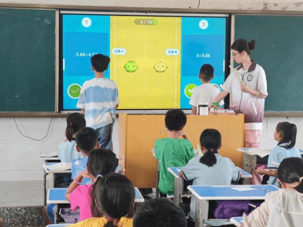 为助力元奏小学学生夯实基础知识,语言文字服务团队开设了语文、数学、英语三科主科基础课程,涵盖知识复习、课业辅导等内容,以课本为核心,为学生筑牢学科根基。复习课堂上,教员们借助AI工具精心设计教学内容,将知识学习与趣味游戏结合,引导学生进行结构化知识复习。从语文拼音、数学计算到英语发音,教员们细致讲解,学生们专注聆听。课业辅导中,教员们耐心解答学生的疑问,力求将每个知识点剖析透彻,帮助学生融会贯通。