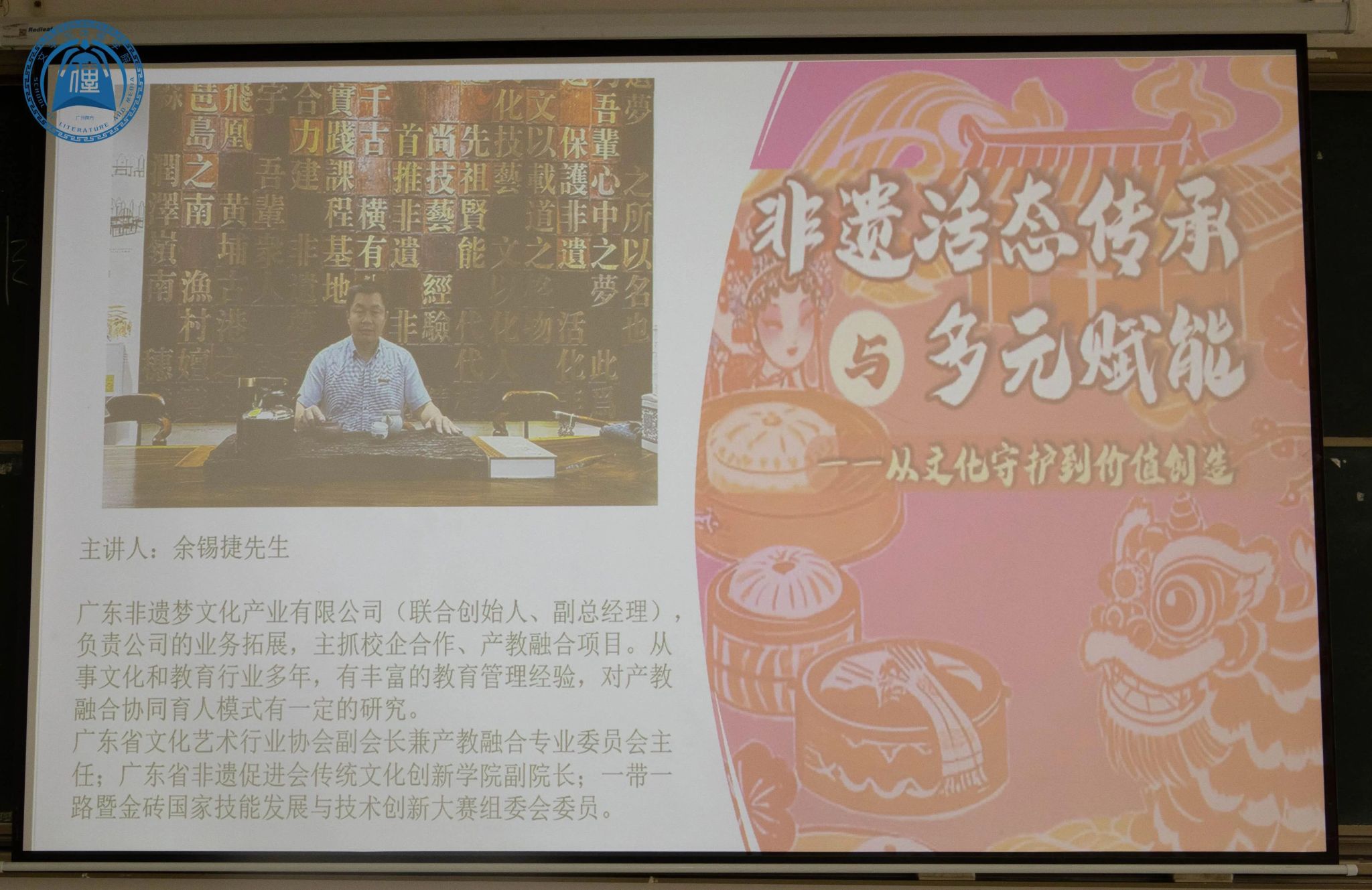 金秋十月,广州南方学院校园内洋溢着浓厚的文化氛围。10月15日下午,广东省文化艺术行业协会副会长兼产教融合专员会主任、广东非遗梦文化产业有限公司副总经理余锡捷先生余锡捷先生应邀为我院师生作题为“非遗活态传承与多元赋能——从文化守护到价值创造”的专题讲座,深入阐释非遗从“保护”走向“活化”的实践路径与多元赋能策略。本讲座也是我院从化乡村文化振兴产业学院、双师课堂“岭南非遗活态传承工作坊”系列讲座之一。