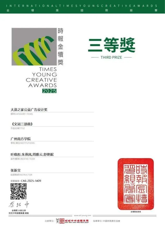 近日,第34届时报金犊奖国际竞赛获奖名单揭晓,我校文学与传媒学院学子在竞赛中取得优异成绩。其中,《文冠三部曲》荣获国家级“大漠之家公益广告设计奖”,《微星,“5”与伦比!》获微星创作赛道国家级二等奖,充分展现了我院在创意设计与专业实践融合方面的育人成效,也是我校首次在此项赛事中获得国家级等级奖。