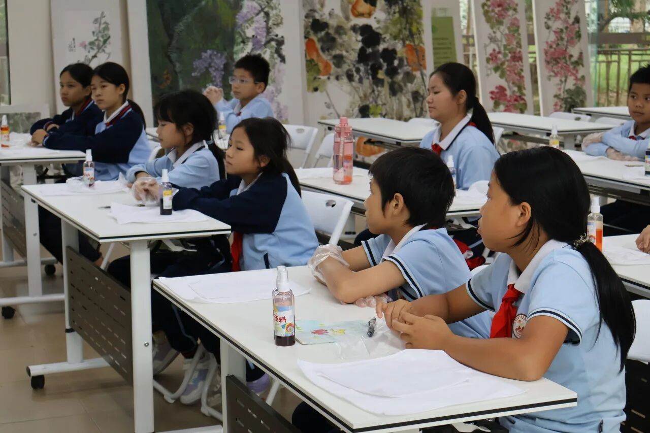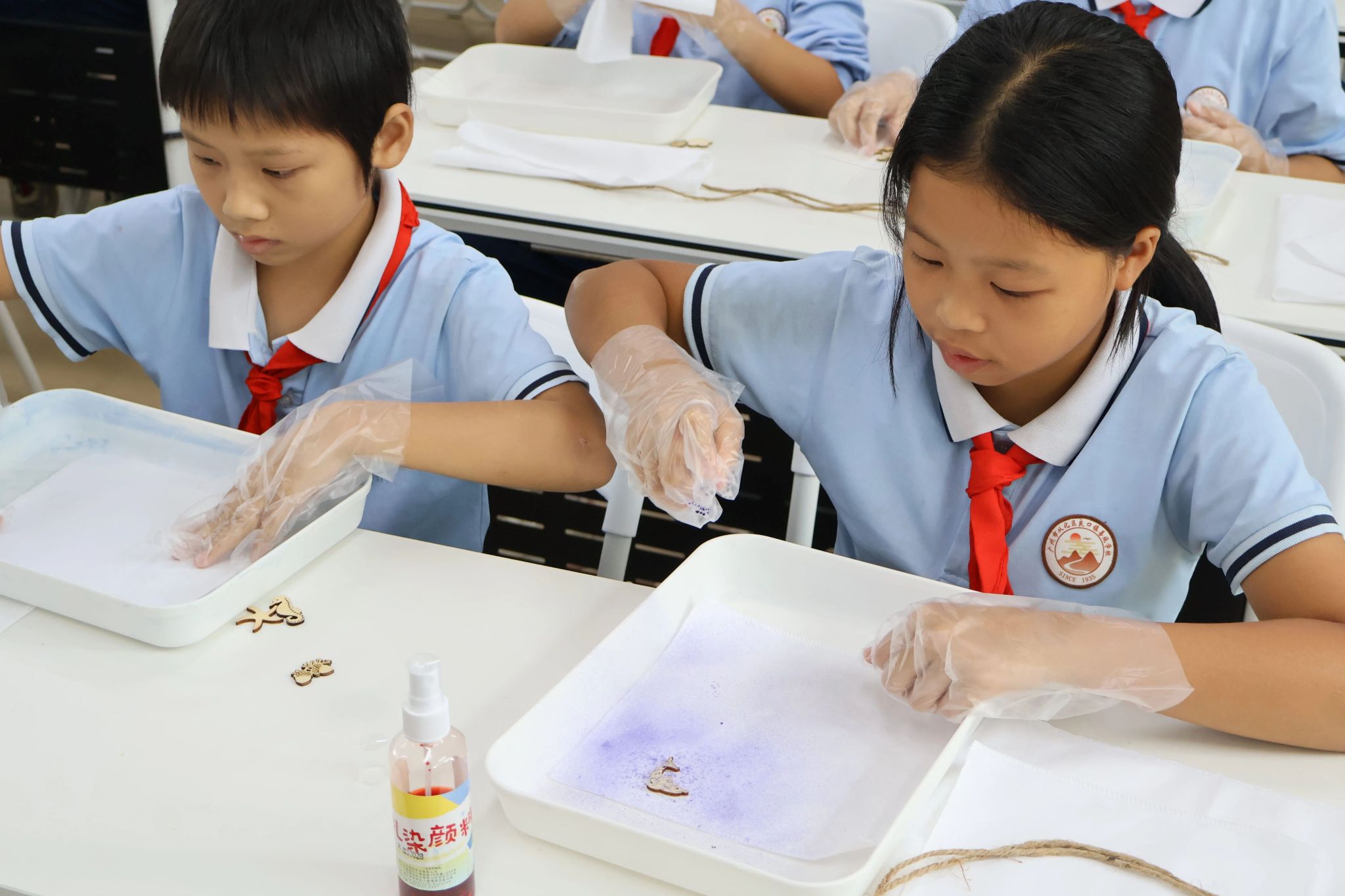 蝉身渐隐,秋色初染。2025年10月21日下午,文学与传媒学院语言服务团队在游婉雯老师的带领下前往从化区善施学校,与同学们一起探索绚丽多彩的扎染世界。