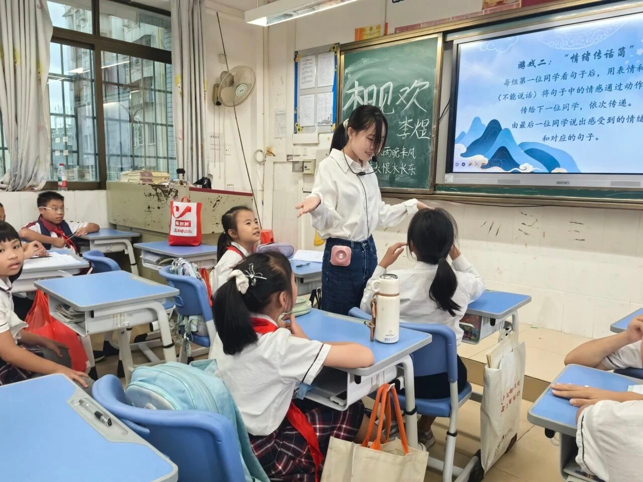 为了让同学们更直观地感知词的情感,小龙老师还精心设计了课堂互动小游戏:让大家用肢体语言传递词句意境,再由同伴猜出对应的词句并大声朗读。生动的演绎不仅活跃了课堂氛围,更让同学们对词作有了更深刻的感触。此次课堂上,小龙老师不仅带同学们领略李煜身处绝境却坚守生命厚度的情怀,更引导大家明白:战胜困难需怀乐观豁达之心,即便遭遇人生困境,也能找到属于自己的突围之路。