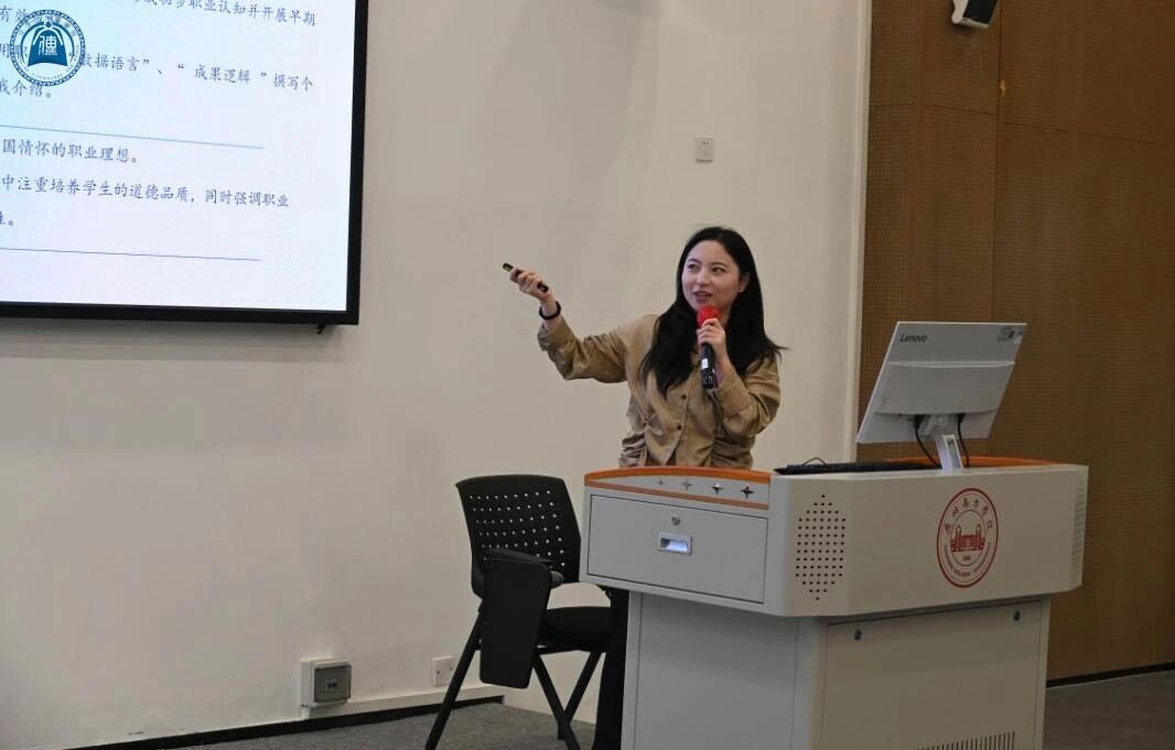公共管理学院李富妍老师从课程设置、师资、教学设计与创新等方面介绍了课程建设情况。课程以职业素养、求职分析、行业认知与专业能力为核心模块,融入思政元素,覆盖五大教学内容,并依托产业学院组织学生实地接触产业。她创新实施“1234+N”教学模式与多元过程化考核,教学成果显著:学生作品在多项国家级与省级竞赛中获奖百余项,部分学生成功创业,毕业生就业能力与用人单位满意度高,还吸引校友反哺投资。教学展示中,她聚焦简历制作,强调精准匹配、格式规范与成果突出。