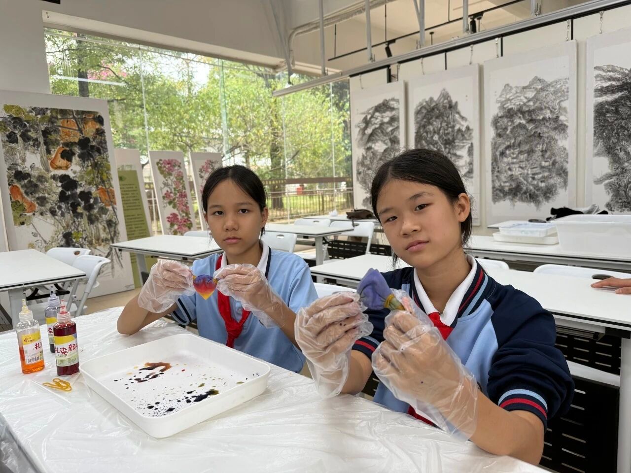 此次课程,同学们不仅亲身体验了非遗技艺的魅力,学习了新的扎染色彩搭配公式,更在实践中深刻体会到非遗传承与创新的多元途径。一折一叠间,是传统技艺的延续;一滴一染中,是创新思维的迸发。非遗的光芒,在同学们每一次灵感的闪现中熠熠生辉;文化的薪火,于每一次专注的创作里得以传递。相信这份对传统文化的好奇与热情,会像小种子一样悄悄种进同学们的心田,让非遗的花朵绽放出更多绚烂的光彩。