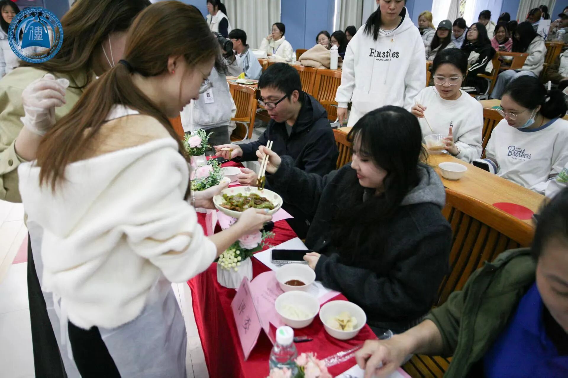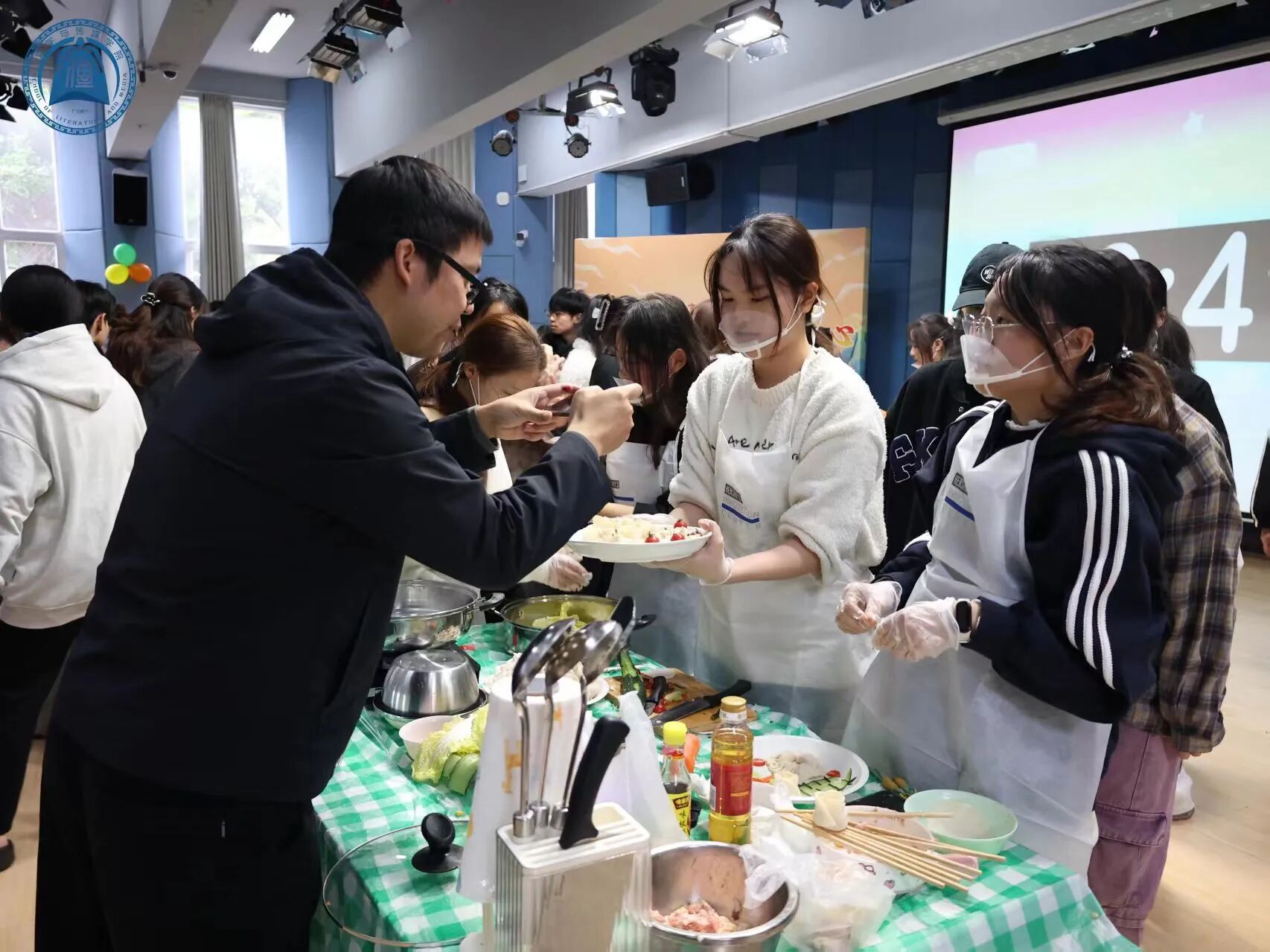 大赛的最后一个环节“家乡美食分享”为赛事添上了暖心一笔。各队在完成比赛作品后,将各自队伍的饺子下锅烹煮。一时间,各种风味汇聚一堂,有的鲜香,有的麻辣,有的清甜。同时,各队伍也分别带来家乡的经典菜肴,从南到北的风味碰撞,在场的师生一边聆听菜品背后的家乡故事,一边感受不同地域饮食文化的多元魅力,进一步深化对中华传统饮食文化的理解和认同。