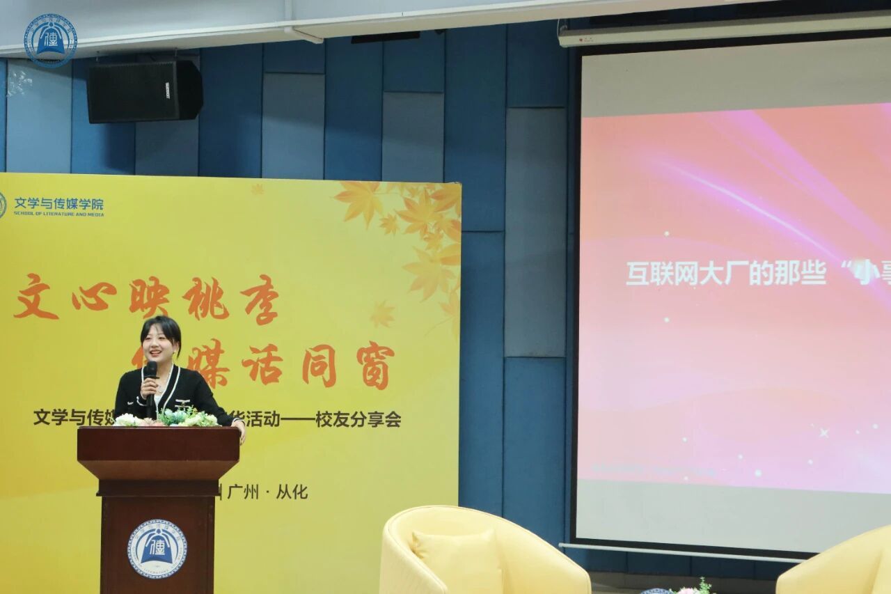 文学与传媒学院院长孙立教授为本次校友分享会致开场辞。孙立教授强调,校友是学院最宝贵的财富,学院始终高度重视校友工作,未来将持续邀请更多校友返校分享,助力在校生成长。他希望本次分享会能够切实帮助同学们更好地思考如何学习、择业、求职,并在步入社会后顺利融入、踏实工作,走好人生的每一步。