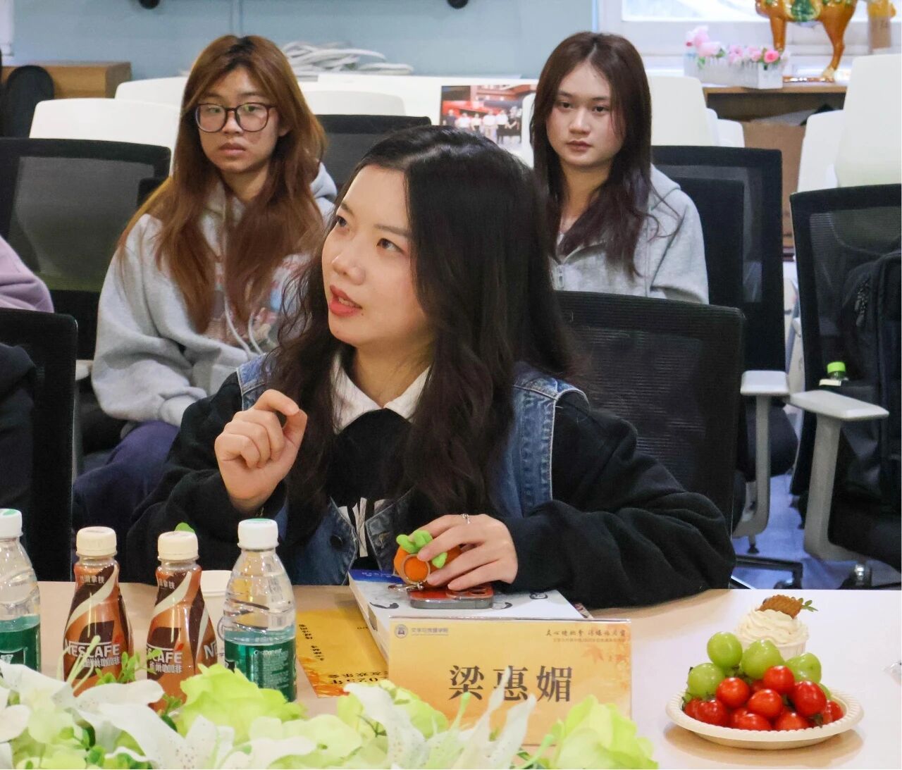 在互动环节,校友们耐心解答了同学们关于职业选择、能力提升与职场适应等方面的疑问。梁惠媚师姐强调,教学岗位更看重扎实的基本功与持续的育人热情,建议有志从教的同学尽早考取教师资格证并多参与教育实践。林珊师姐提醒关注互联网行业动态,主动积累项目经验,提升数据分析与沟通协作能力。