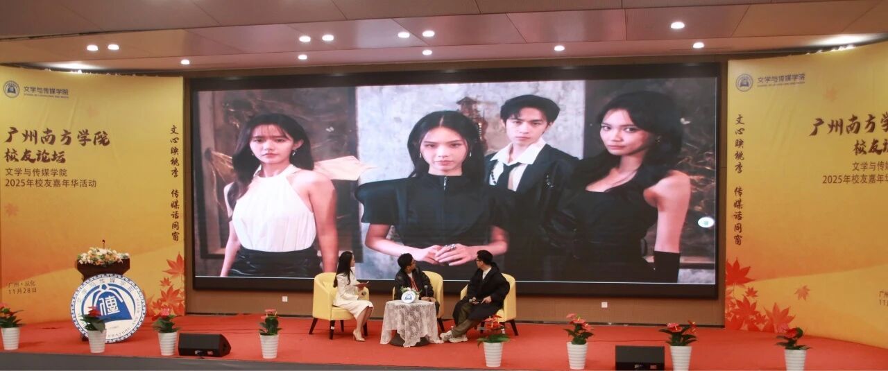活动在广州南方学院校长助理蒋玮老师致辞中正式拉开序幕。蒋玮老师深情回顾了学校的办学历程,更提到校友活动是展望未来的重要契机。他代表学校向杨毅坤导演等校友、嘉宾致以热烈欢迎和诚挚敬意,并高度评价杨毅坤导演的成长历程是我校育人成果的生动体现,期望同学们珍惜机会,通过此次专业对话,激发创新思维,思考职业发展,将自身发展与粤港澳大湾区的建设结合起来。