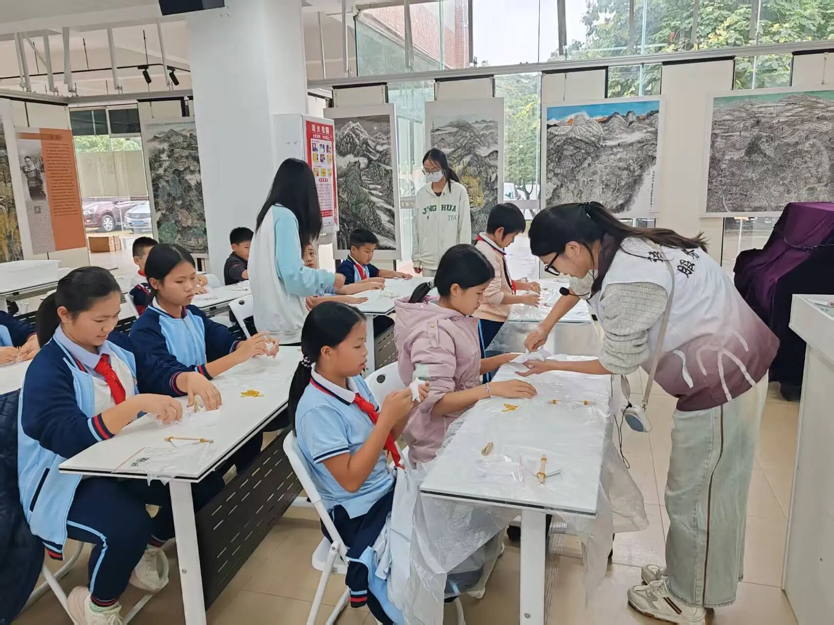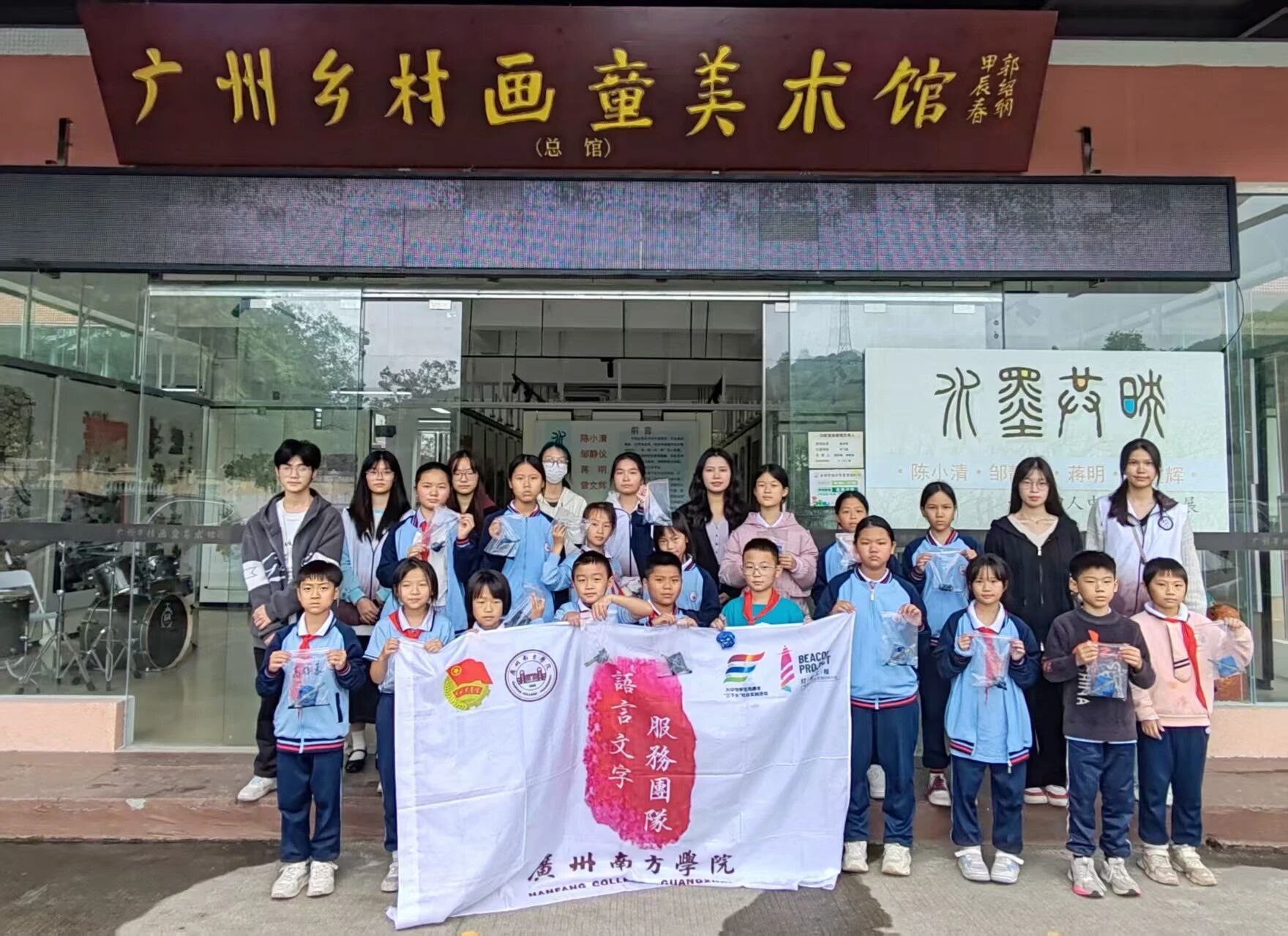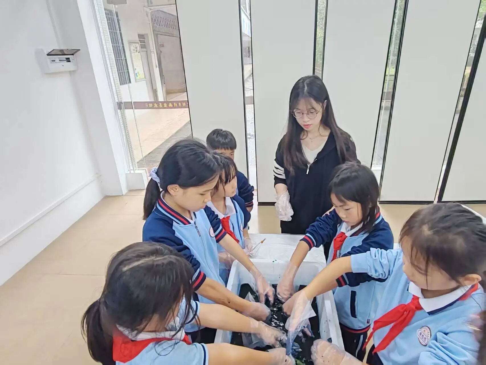 秋叶飘零,秋光正好。2025年11月4日下午,文学与传媒学院语言文字服务团队在游婉雯老师的带领下前往从化区善施学校,与同学们共同开启扎染手帕的非遗课堂。本次课程的小老师由2024级汉语言文学专业的卢湘敏担任。