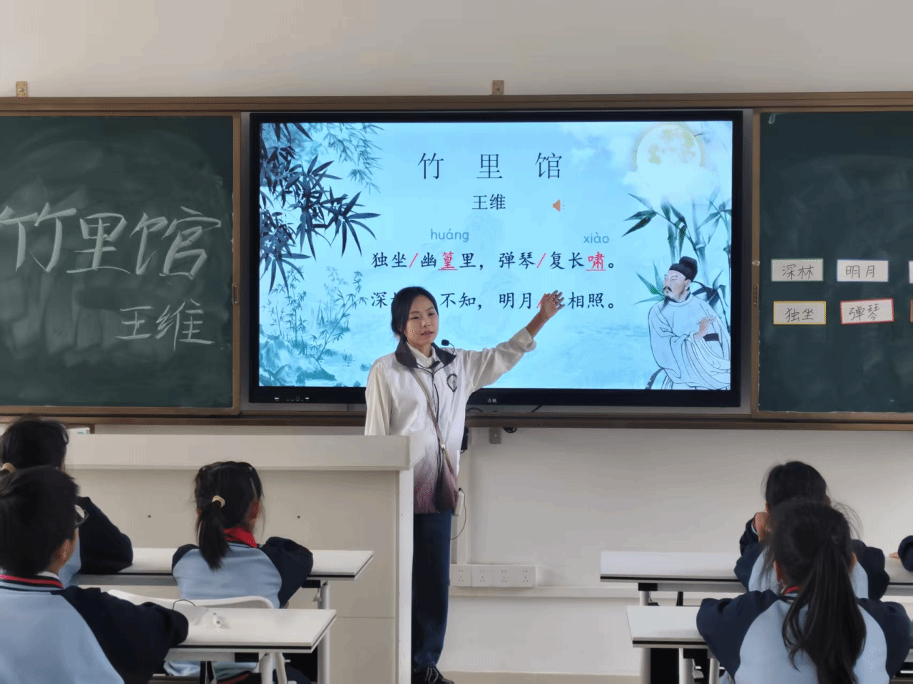 这堂课里小朋友们不仅感受到了王维在竹林里的孤独,更深刻体会到“诗中有画”的高超境界。课堂在最后一遍朗读中落下帷幕。