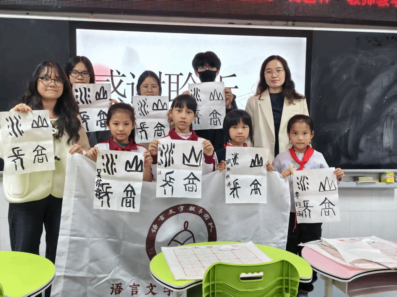 当笔尖触碰宣纸,笔墨晕染间,甲骨文字跃纸而生,一场跨越古今的非遗之旅正式启幕。11月28日,广州南方学院语言文字服务团队在单涵滪老师的带领下,将“甲骨文书法”课堂搬进了流溪小学。本次课程由文学与传媒学院的单涵滪老师担任主讲,她通过趣味互动与实操体验,让沉睡千年的甲骨文“活”了起来。