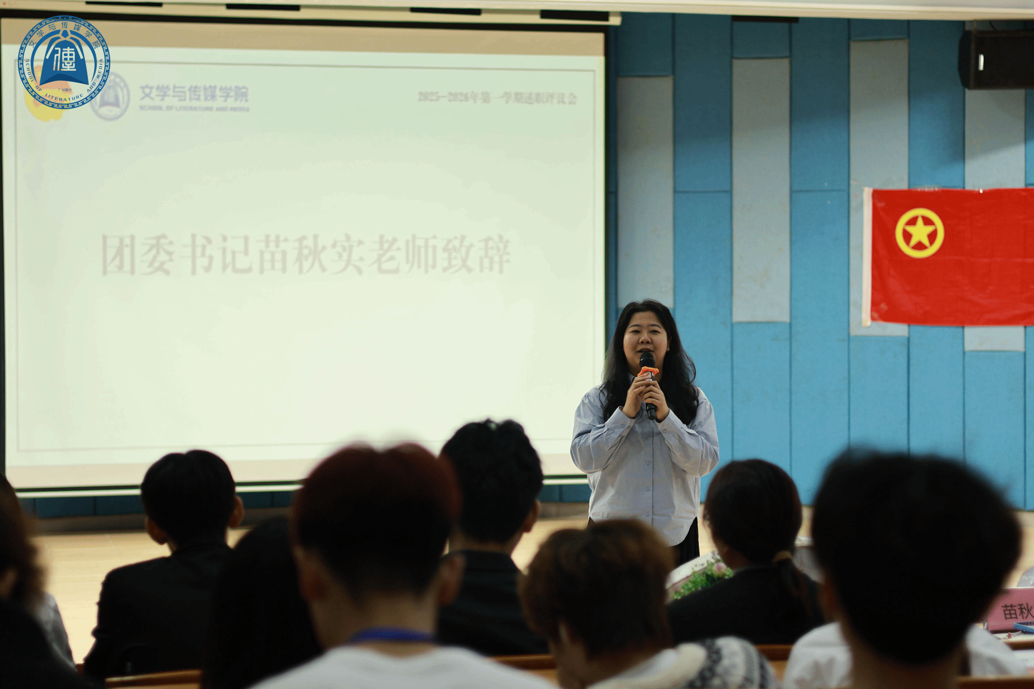 为更好地检验监督文学与传媒学院团委学生会的工作情况,我院于2026年3月11日下午举行了团委学生会述职评议大会,文学与传媒学院团委书记苗秋实老师,辅导员王亚洁老师、满丽老师和覃韵萍老师出席了本次大会,与各位成员一同回望过往,展望未来。