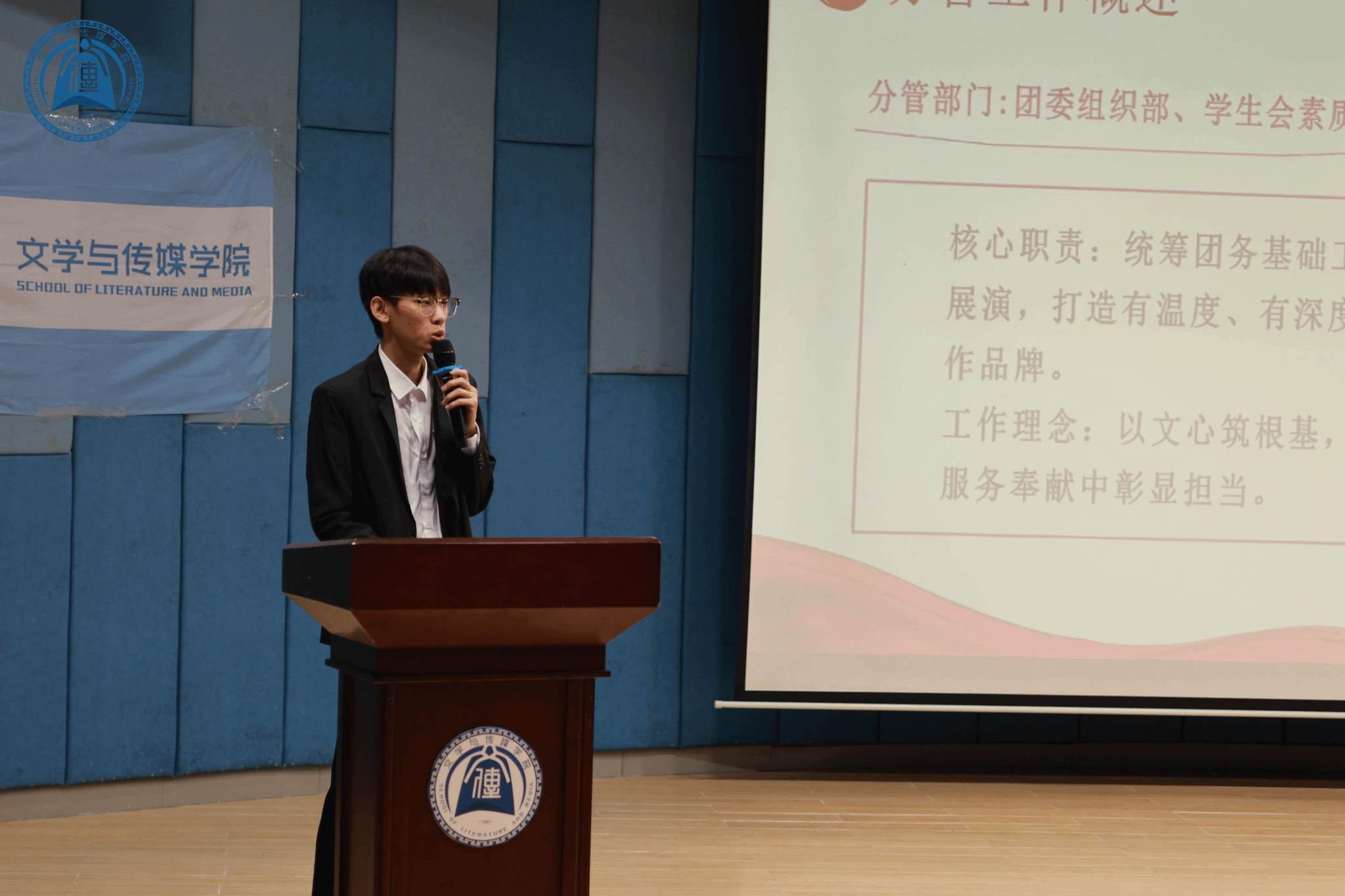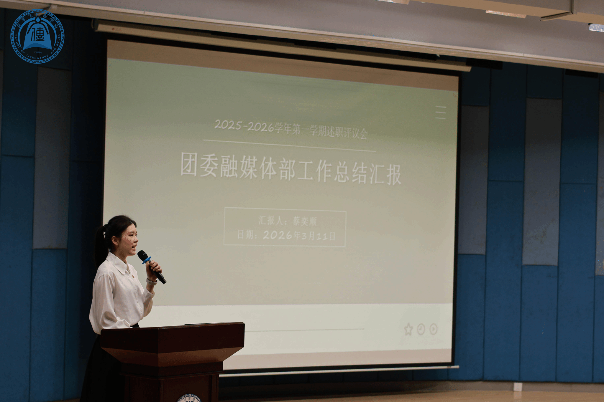 随后,团委学生会各部门依次述职,总结回顾上学期的工作情况,全面复盘不足之处,并对未来的工作进行科学安排。在活动策划和风采展示等方面,各部门均取得亮眼成果。例如,实践部所跟进落实的各式活动,增强了师生联系,提升了文传的凝聚力;学风建设部所组织筹办的各类赛事,调动了学生学习积极性,促进了校园文化的建设。