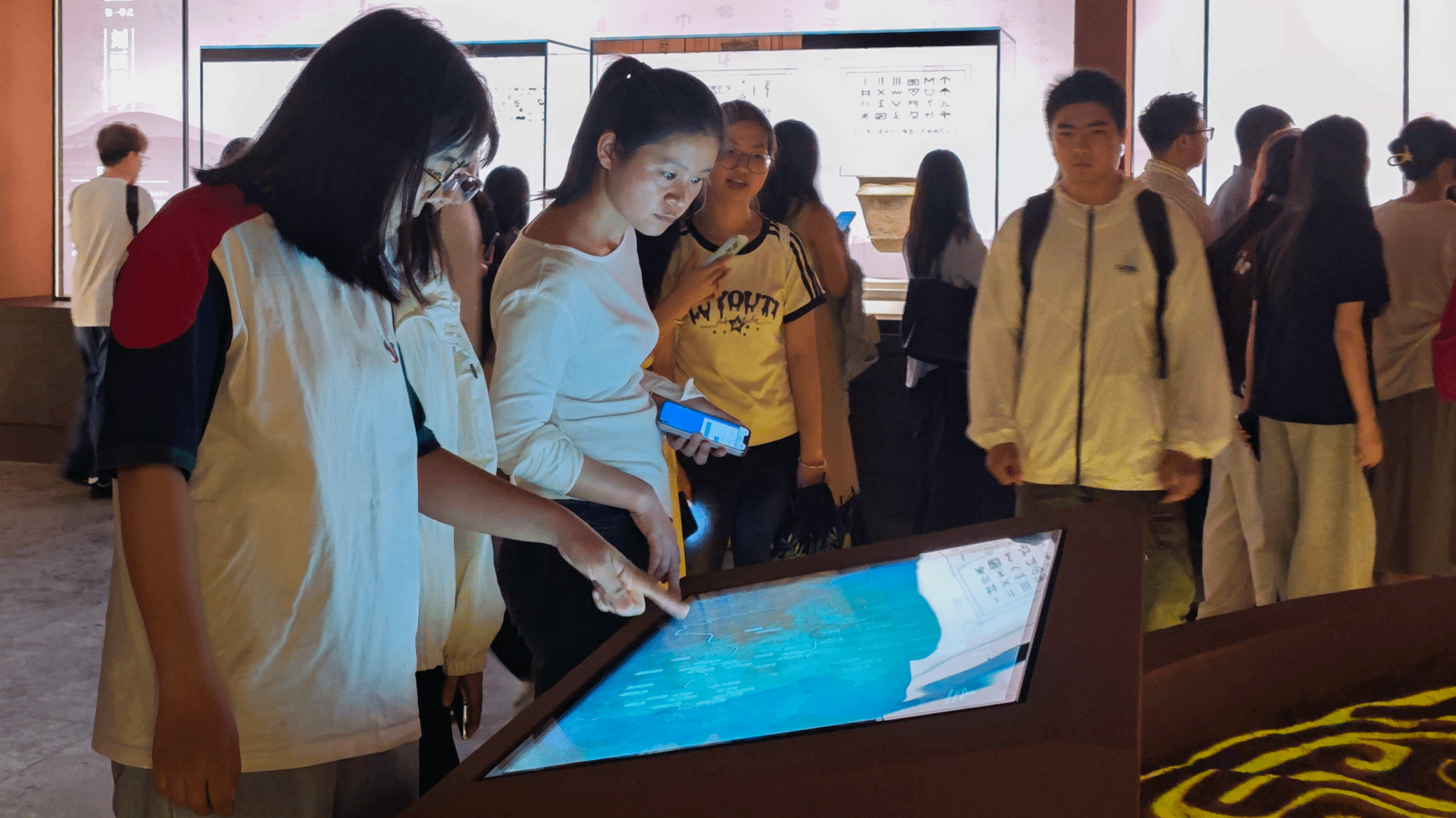 参观过程中,馆内丰富的数字版本资源与沉浸式体验给师生们留下了深刻印象。无论是悬浮在空中的青铜器铭文影像,还是通过LED屏“活”起来的活字印刷,都展示了现代科技让古老文明焕发出的新生机。这不仅让同学们惊叹不已,也让教师们对“新文科”背景下的学科建设有了更深的思考。