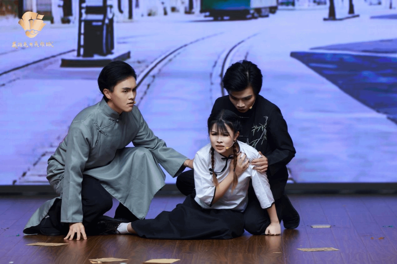 在众多入围团队中,广州南方学院紫阳戏剧社传来喜讯。在全体成员的精心筹备以及于妍老师的悉心指导下,由詹倬维、李承珊、李舒程、温廷熙、廖家杰、曹佰宁六位同学组成的表演团队,于3月22日成功入围本届大赛。以青春戏剧之力致敬英雄城红色精神从敲定剧目到反复打磨台词从揣摩角色心境到编排舞台细节,紫阳戏剧社的同学们始终怀揣对戏剧的热爱与对红色文化的敬畏,利用课余时间全身心投入排练。每一次走位的调整、每一句情感的拿捏、每一幕场景的配合,都凝聚着大家的汗水与坚持。于妍老师全程陪伴指导,从表演技巧、情感表达到舞台呈现、剧目内核,给予团队专业细致的点拨,助力同学们不断突破自我,让角色更鲜活、让故事更动人。