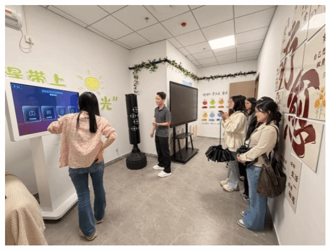 辅导员带领学生代表参观了操场和健身区,新校区操场设施完善,是清晨晨跑、傍晚放松的首选之地。夕阳景色极佳,期待学生锁定美好瞬间。新校区健身房区配备专业器材,实行规范化开放管理,助力养成健康自律的生活习惯。