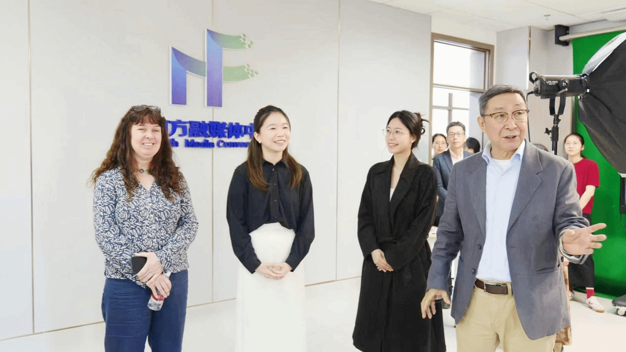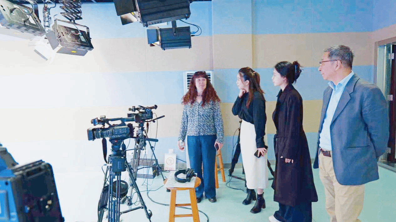 代表团一行来到文学与传媒学院融媒体中心,逐一考察了融媒体中心的总控室、虚拟演播厅、大数据中心、摄影棚等相关实验室,详细了解各平台功能配置、设备运行与教学使用情况。除此之外,Heather Niven 女士与冯海玥女士饶有兴味地参观了师生在影视制作、文学创作、新闻节目制作与传播等方面的实践教学及实践成果,认真听取成果介绍、现场观看作品展示,对学院紧贴行业前沿、强化实践实训的办学思路与育人成效给予充分肯定与高度赞赏。