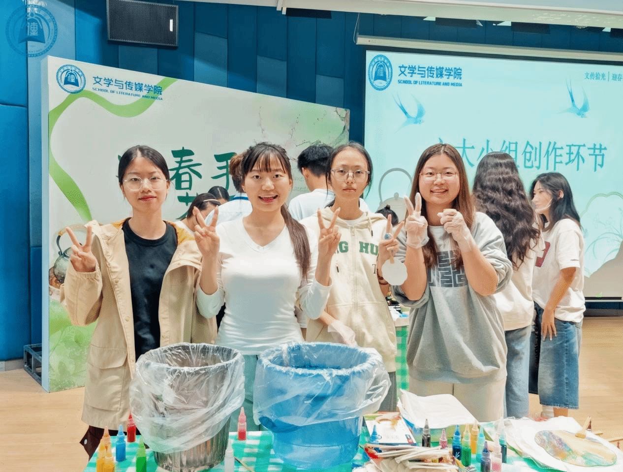 本次活动以轻松体验为核心。为此,我们特意设置了三个游戏环节:春日投壶、春日诗词赛和春日默契大考验,兼顾趣味性与文化性。现场同学们热情高涨,纷纷自由组队、踊跃报名参与。投壶环节中,大家屏气凝神、瞄准投壶,比拼着手感与技巧。春日诗词赛上,同学们出口成章、对答如流,尽情展现自身的文学素养与风采。默契大考验环节里,队友间心有灵犀、默契配合,每一个精彩瞬间都引来阵阵掌声与欢呼声。三轮游戏后,获胜队伍收获了精美礼品。未上台的同学也热情围观,满怀期待地等待手作环节,现场氛围持续高涨。
