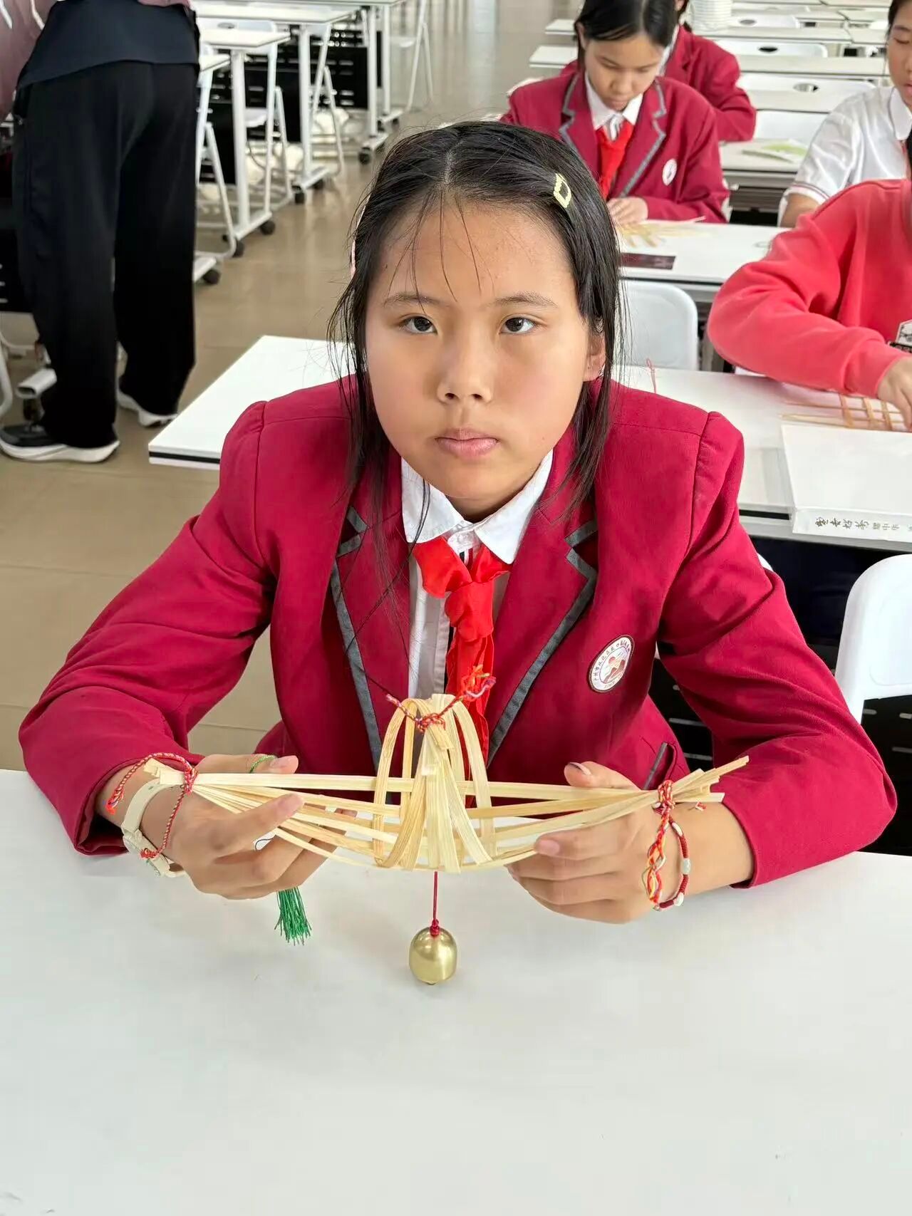 看着自己亲手编织的作品在风中轻轻晃动,孩子们的眼里满是成就感与喜悦,古老的竹编技艺,也在这一声声清脆的风铃响中,悄悄种进了孩子们的心底。
