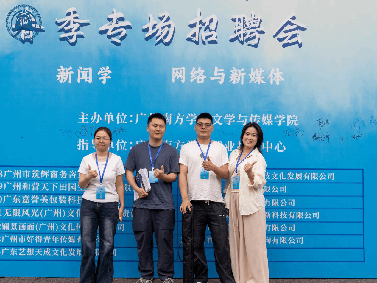 为深入落实国家关于高校毕业生就业工作的决策部署,拓宽就业岗位资源,搭建用人单位与毕业生的精准对接平台,4月11日上午,我院在广州南方学院1号教学楼前广场成功举办2026年春季专场招聘会。学校党委植秀聪副书记,就业指导中心马忞主任,文学与传媒学院院长孙立教授、副院长游鸽副教授、网络与新媒体系主任胡美香副教授、专业教师和辅导员老师们亲临现场,为同学们求职保驾护航,也为校企对接、人才培养搭建了坚实桥梁。