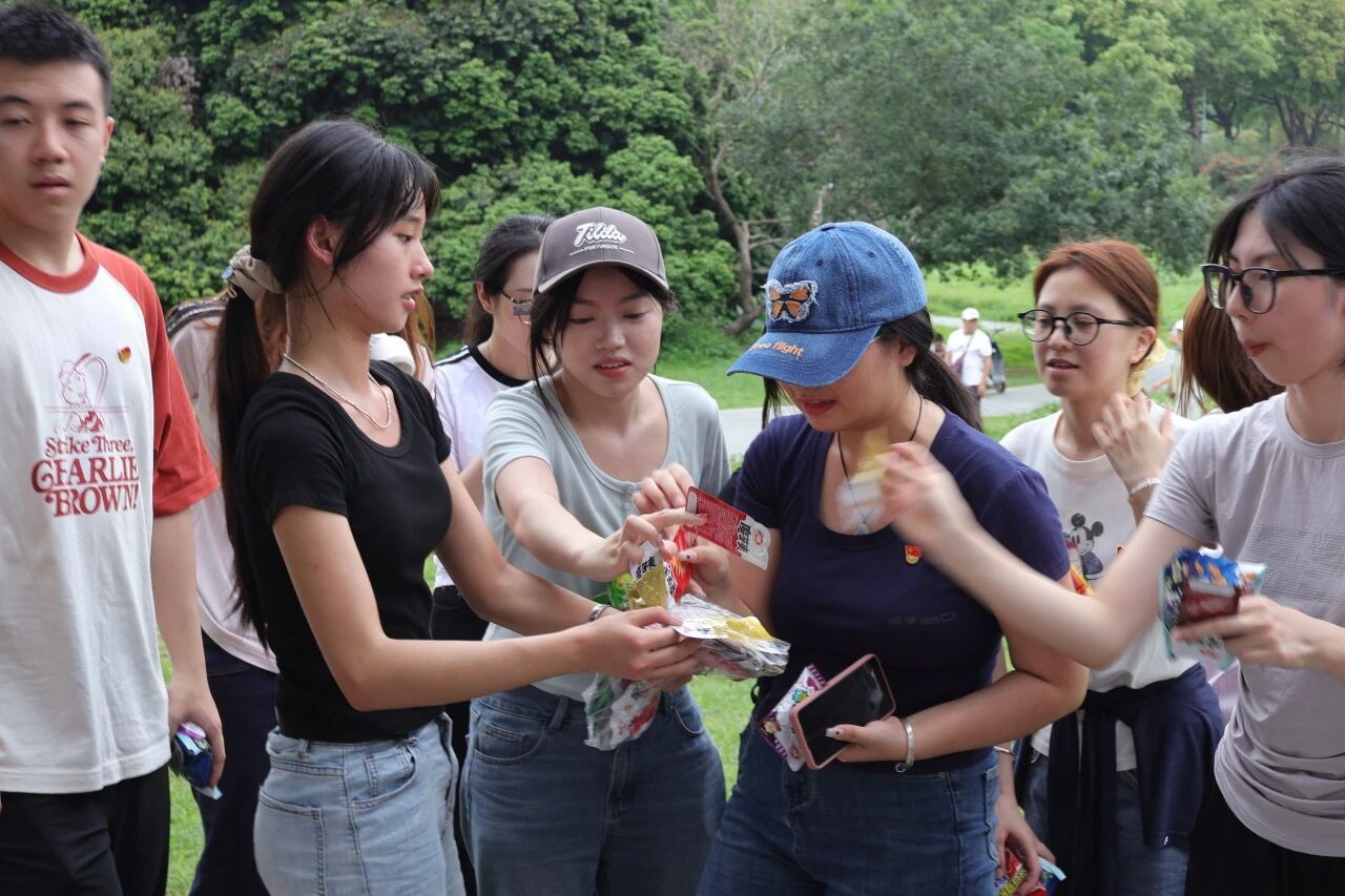 抵达风云岭,满目青翠,春风拂面。众人沿小径步入指定区域,眼前开阔的草地与远处的山峦相映成趣,一派生机盎然。策划组迅速就位,将野餐食品、饮用水和游戏道具等取出,其余成员分工协作,随后一方简洁温馨的活动场地便布置妥当。