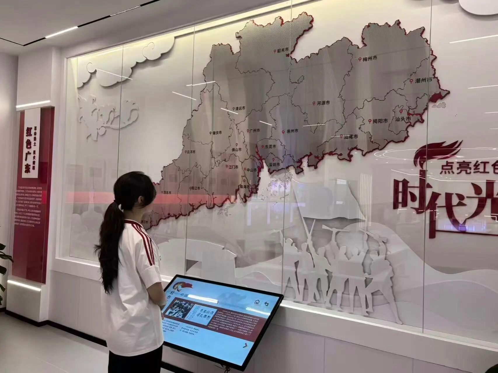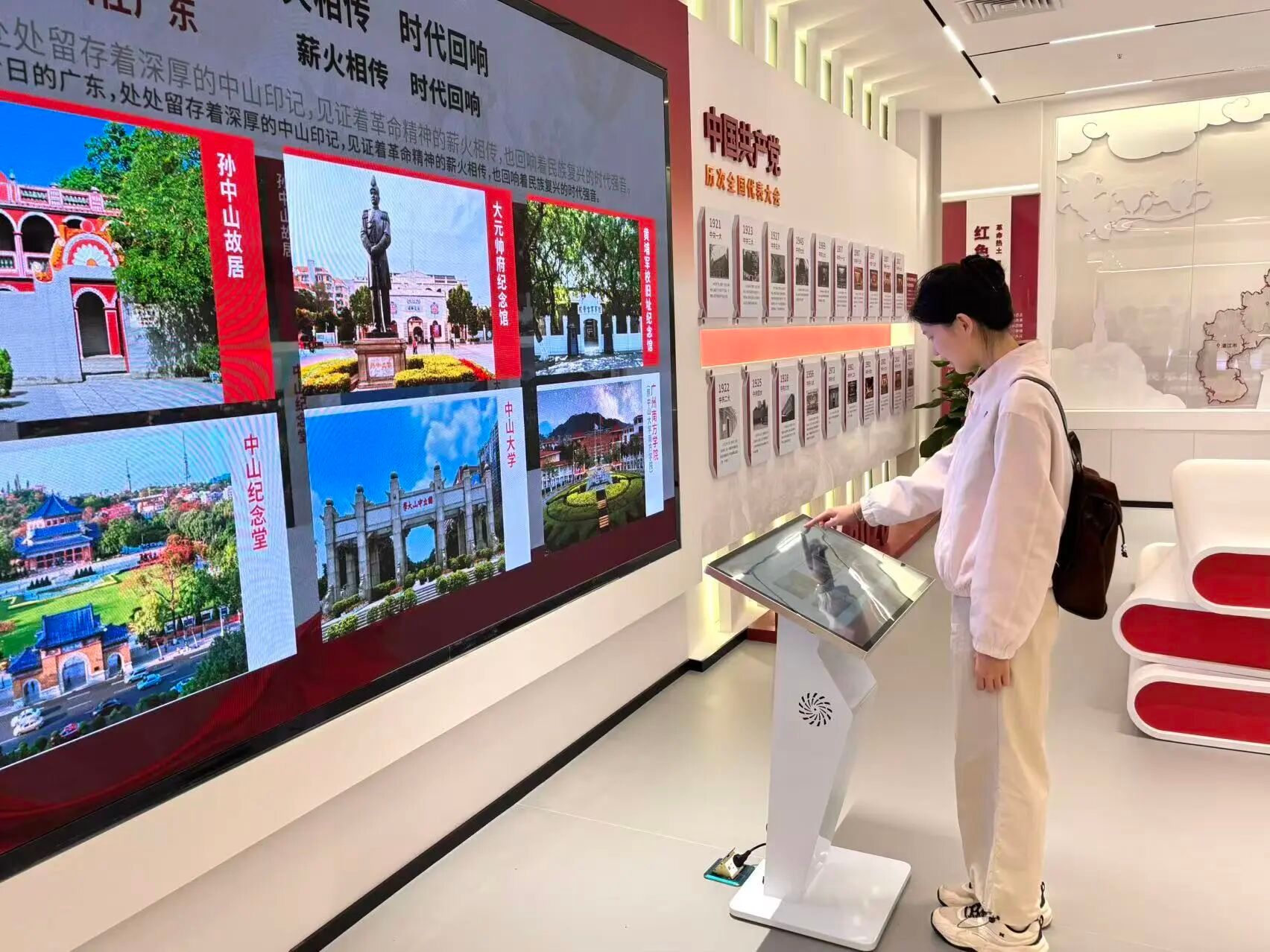 今天下午,我走进学校党建思政育人馆开展学习。馆内以丰富的图文、场景还原,系统展现了党的百年征程与广东深厚的红色底蕴,让我直观感受到南粤大地薪火相传的革命精神。我还体验了馆内的互动触摸屏,指尖划过屏幕,学校扎根红色沃土、践行立德树人的育人历程清晰呈现,校史沿革与红色故事以数字化的方式变得鲜活可感。