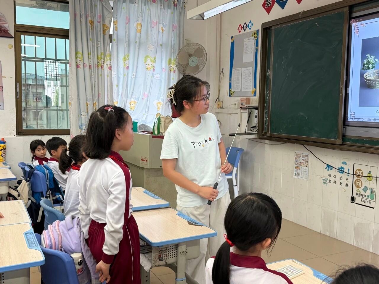 2026年4月7日,春风和煦,广州市从化区流溪小学的教室里迎来了一股清新的文化之风。在语言文字服务团队单涵滪老师的带领下,一场别开生面的非遗课堂在这里展开。本次活动的小老师,是来自2023级汉语言文学专业的卢晴同学。她带领着同学们走进了中国传统手工艺——竹编的奇妙世界,并亲手制作了独一无二的竹编画。