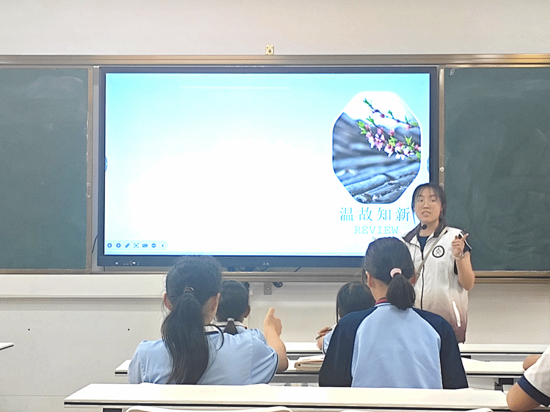 当小林老师走进那间教室,同学们明亮而好奇的眼睛瞬间齐刷刷地聚焦在小林老师身上。小林老师以孩子们熟悉的春天美景作为教学的切入点,以温和且清晰的语调询问孩子们是否知晓一些与花相关的诗句,以此展开课堂互动。