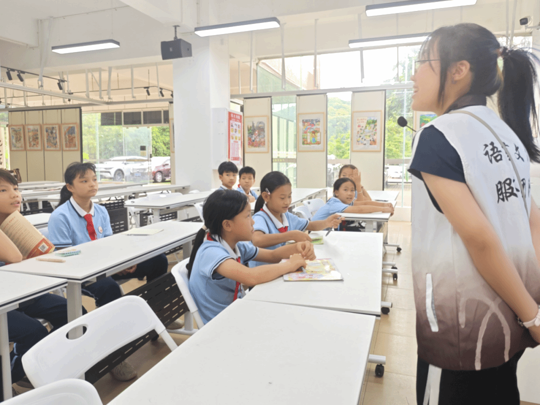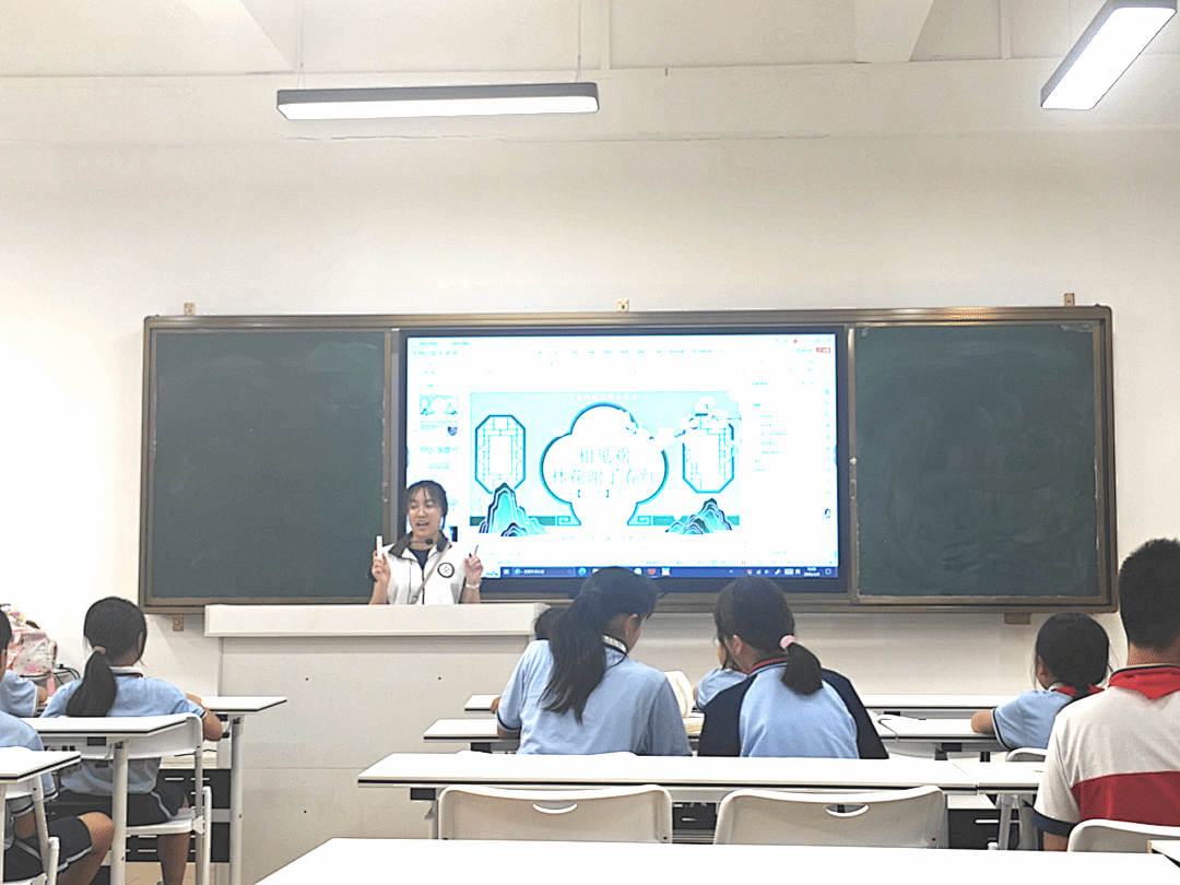 2026年4月8日下午,文学与传媒学院语言文字服务团队在杜欣莉老师的带领指导下,走进了从化区善施学校,跟着李煜遨游《相见欢·林花谢了春红》为主题的古诗词系列课堂。本次课程由25级汉语言文学专业林可楠同学担任小老师,小林老师将带领同学们美美的春花里,好好感受后主李煜那些爱恨的复杂情感。