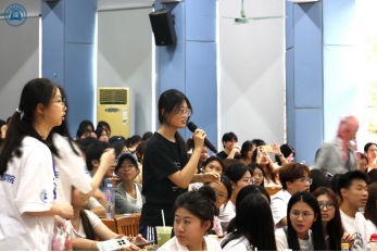 文艺表演结束后,趣味互动环节火热开启。工作人员以现场提问、问答赠礼的形式与观众热情互动,趣味电竞知识问答搭配惊喜礼品,让现场氛围持续升温。同学们踊跃举手、积极作答,欢声笑语不断,全场热情被充分点燃,为即将开始的师生对战做好了充分预热。