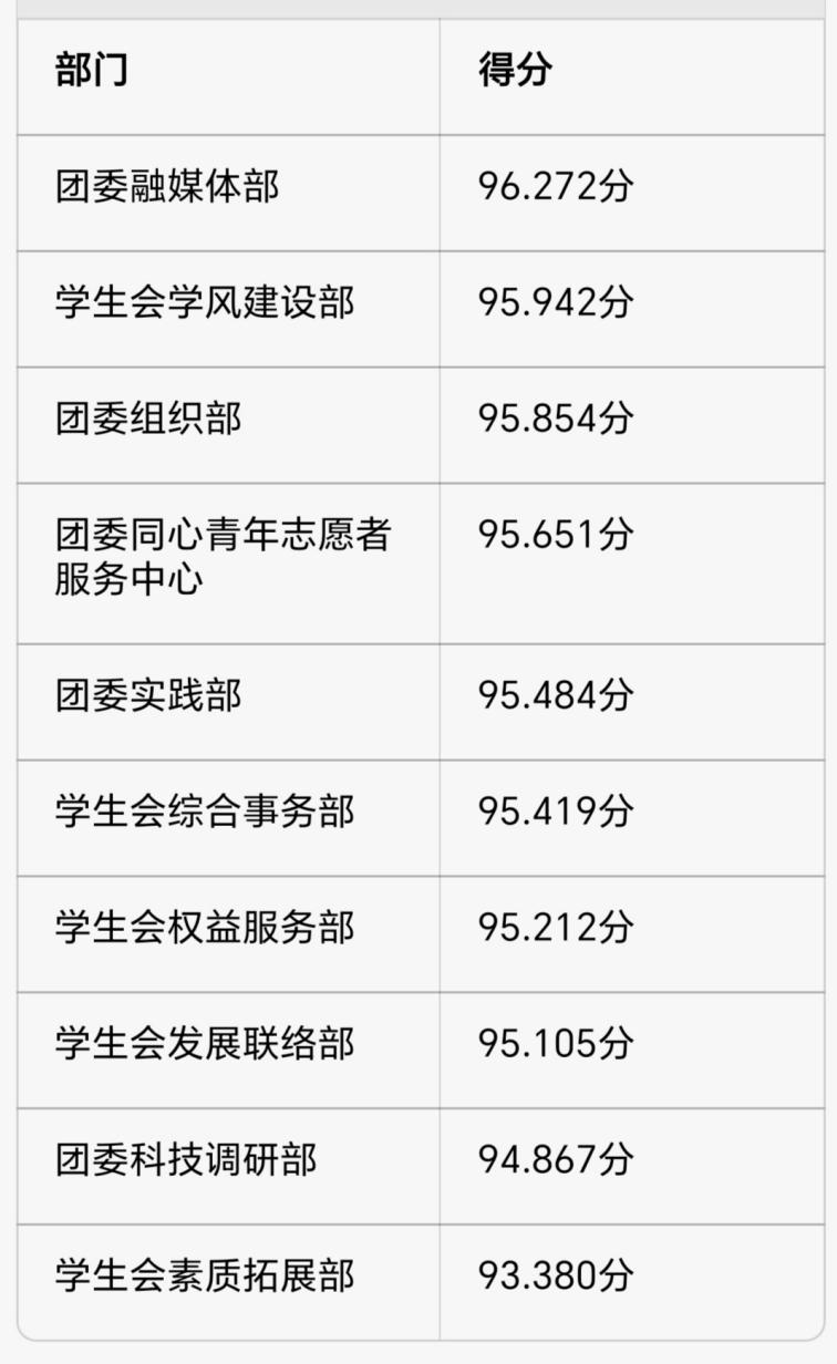 经过统计,现将文学与传媒学院团委学生会2025-2026年学年第一学期述职评议会结果公示如下: