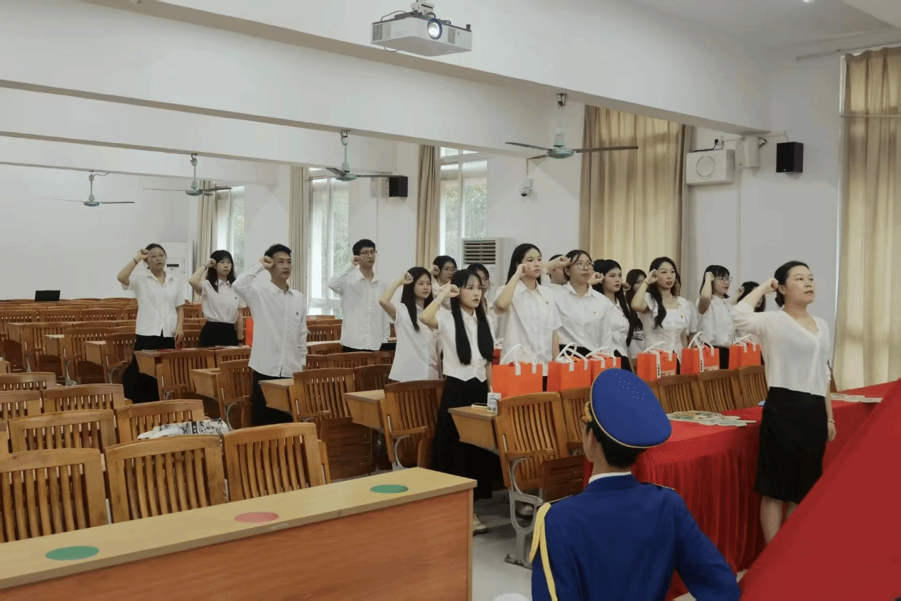 活动中,全体党员面向党旗庄严列队,在国防教育队礼兵护送党旗入场后,李萍老师带领大家重温入党誓词。铮铮誓言铿锵有力,庄严承诺掷地有声,进一步坚定了毕业生党员不忘初心、牢记使命的理想信念。