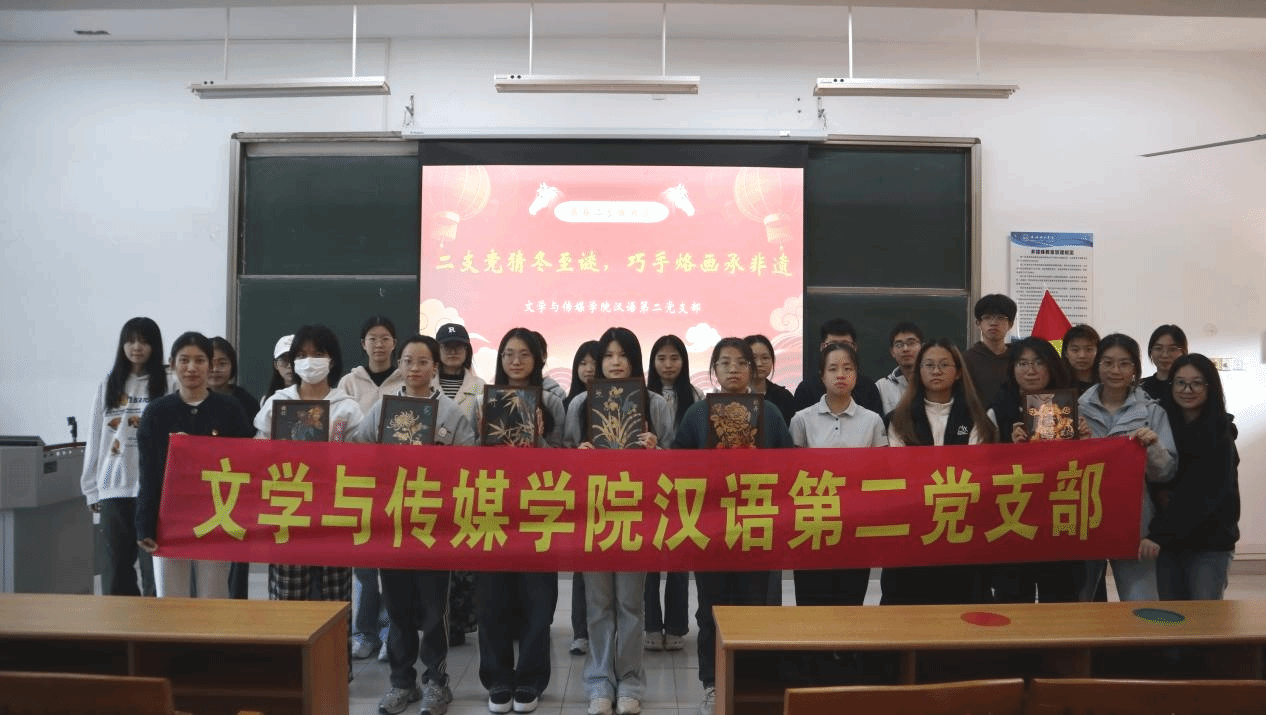 为深入贯彻党的二十大关于文化建设的部署要求,推动党建工作与中华优秀传统文化深度融合,12月17日,文学与传媒学院汉语第二党支部于1教304开展“竞猜冬至谜,巧手烙画承非遗”主题党日活动。活动以冬至传统节庆为纽带,融合非遗烧箔画制作与红豆沙丸子手作,让支部党员在沉浸式体验中感悟传统文化魅力,厚植家国情怀,凝聚支部向心力。