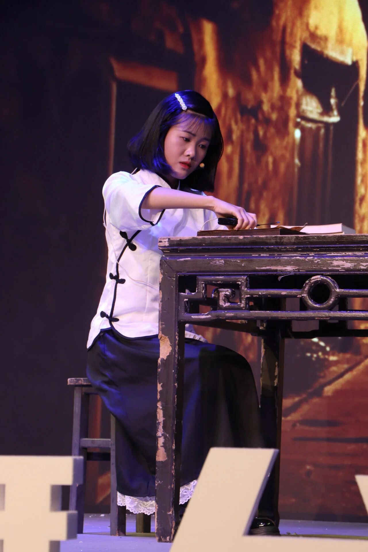 从校园展演到“红棉剧说”大赛,《启明》经历了一场“瘦身手术”——剧本从50分钟压缩至15分钟。更关键的是,叙事视角转变为以伍乃茵的第一视角来叙述广州“文总”六烈士,而结构变成了“独白+剧情”的四幕戏。