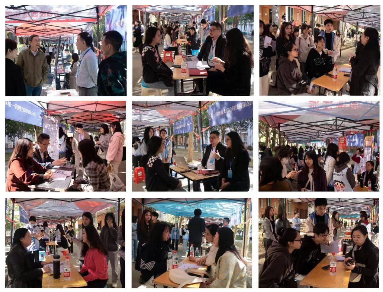 招聘会现场,应聘学生携带精心准备的简历、获奖证书及作品集等材料,主动前往各招聘摊位与企业负责人深入交流,详细了解企业发展情况、岗位要求、薪资待遇与工作安排等信息,现场求职氛围热烈有序,本次招聘会共吸引来自各个院系的学生800余人参加。与此同时,学院“一站式学生社区就业服务加油站”同步开启,为学生提供简历投递指导、面试技巧讲解、就业政策解读等全方位咨询服务,同时开展免费简历打印、简历优化设计等便民服务,以务实举措助力学子更充分、更高质量就业。为进一步加深同学们对企业与岗位的了解,和一管理咨询有限公司、深圳市鸣鸿刀精密模具有限公司还现场举办企业宣讲会,企业负责人分别介绍公司发展概况与岗位需求,表达了吸纳优秀学子、助力学子将专业知识转化为实践成果的殷切期待。